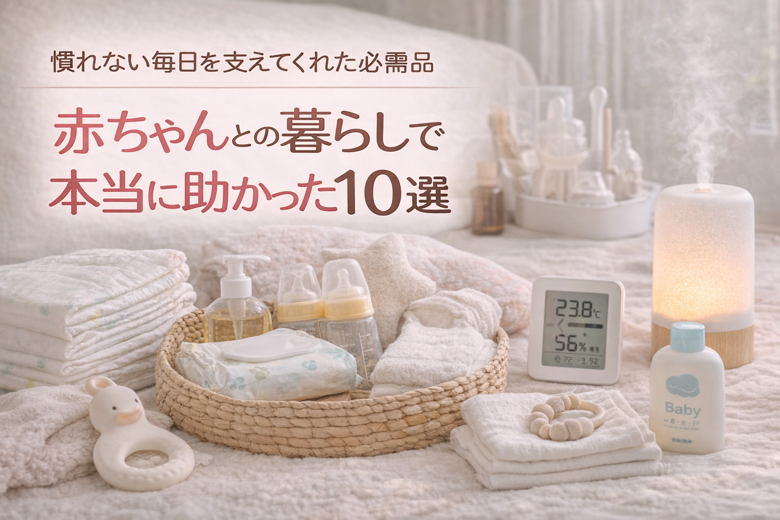 今回は、赤ちゃんとの暮らしの中で、実際に持っていてよかったもの・役立ったものを10個まとめました。